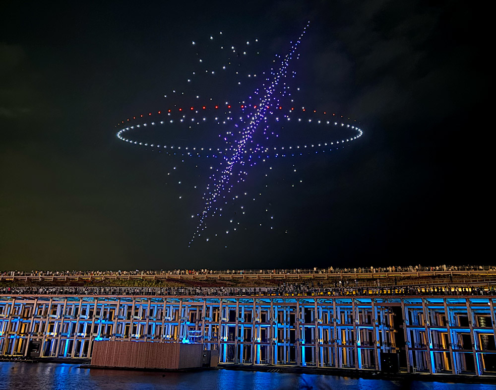 次の図形に移動するために、光を消して“こっそり動く”ドローンたちを想像すると感動すら覚えました。